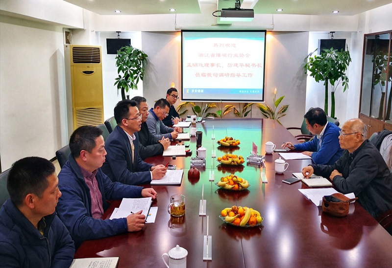 12月7日,浙江省爆破行业协会孟昭运理事长、厉建华秘书长莅临公司进行调研走访,公司总经理申屠建新、副总经理汪刚龙、崔晓明、总工程师辛振坤、总经理助理张洁升及相关部门负责人参加接待座谈。