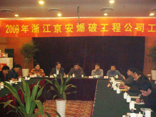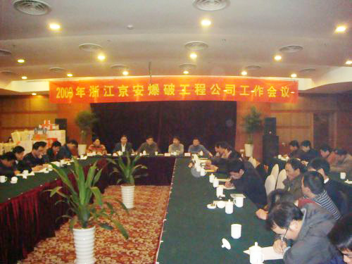2009年1月16日,公司在杭州召开了2009年工作会议,总公司领导班子全体成员及各职能部门负责人、公司领导及全体员工(广东项目部派代表)参加了会议。会上,公司各项目部首先汇报了08年工作情况,对09年的工作提出了意见和建议;王霞明总经理根据物产总公司的要求,重点就公司09年的工作思路作了阐述;最后,刘炯董事长对公司2009年的发展做出了进一步的指示,要求“以技术进步为核心,打造科技型企业,立足浙江爆破服务市场,放眼国内甚至国际市场,向成为国内爆破服务核心企业和标杆企业的目标努力。”(公司综合办公室)