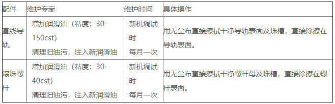 每月保养同时检查Sensor的检知光电区是否有异物或灰尘,如果有,可以用干式无尘布擦拭;用无尘布直接擦拭干净螺杆母及珠槽,直接涂擦在螺杆表面。