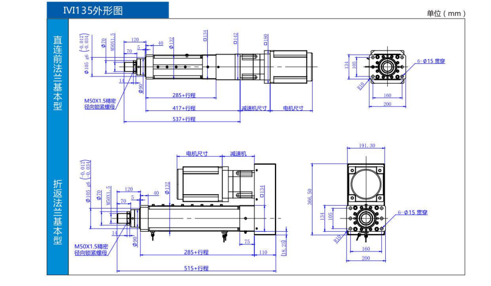 3.精确控制--配置编码器, 压力传感器,位移传感器,实现闭环精确定位;驱动系统--直流电机12/24V,单项交流电机,三相交流电机,伺服电机等,无需气源/液压源,维护更简单方便,能耗低;