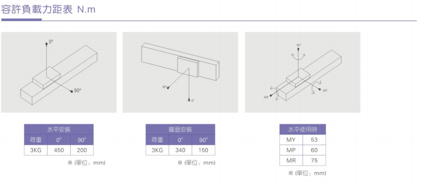 3、加减速度会使搬运质量产生惯性负荷,加减速度越大可搬运质量会越小;而且过大的加减速度会产生较大的重势力,设计时需纳入考量规范。