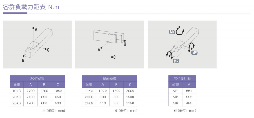 3、加减速度会使搬运质量产生惯性负荷,加减速度越大可搬运质量会越小;而且过大的加减速度会产生较大的重势力,设计时需纳入考量规范。