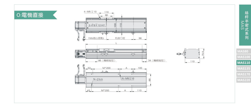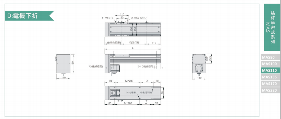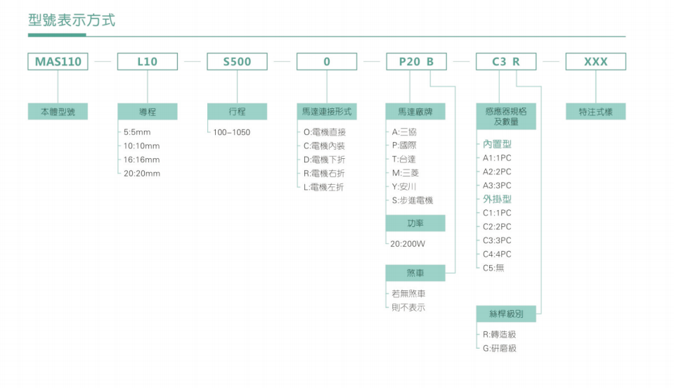 B驱动方式可依照使用需要选择滚珠螺杆驱动或时规皮带驱动。