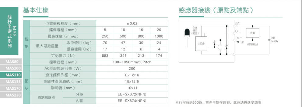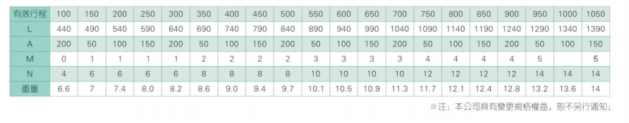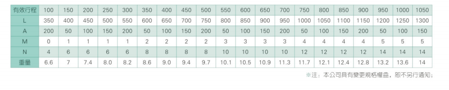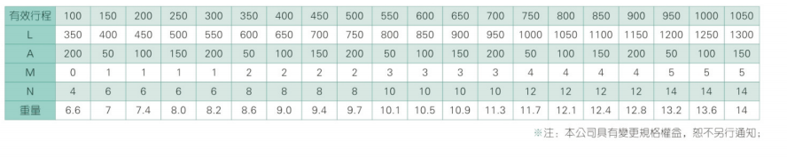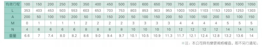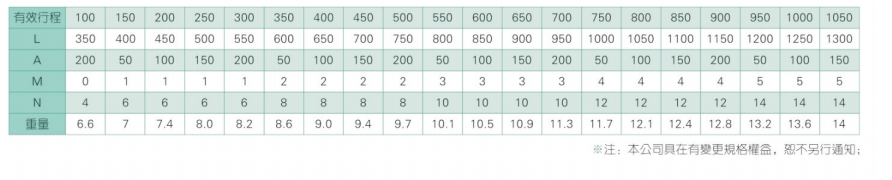 2、螺杆转速超过临界转速时可能发生共振,临界转速和螺杆长度有关,故滚珠螺杆的临界转速也间接决定了滑台模组的有效行程和总长度,有效行程和常用螺杆规格转速的关系如下列表格。