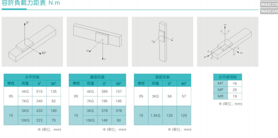 3、加减速度会使搬运质量产生惯性负荷,加减速度越大可搬运质量会越小;而且过大的加减速度会产生较大的重势力,设计时需纳入考量规范。