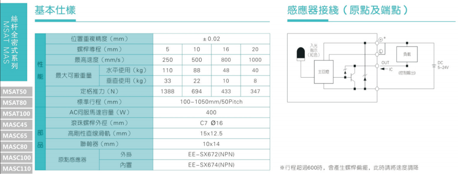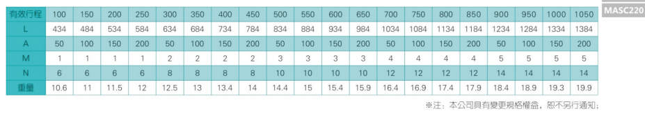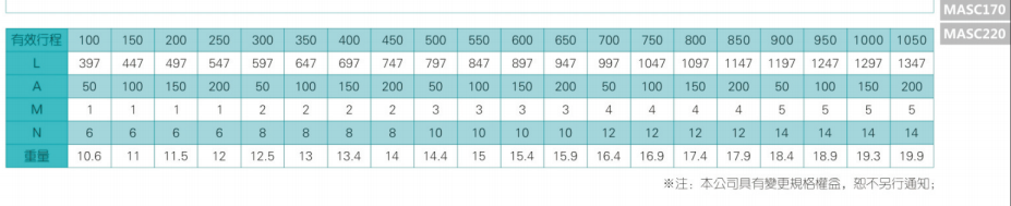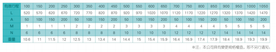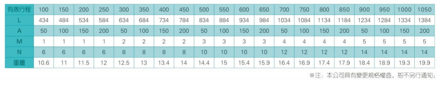 2、螺杆转速超过临界转速时可能发生共振,临界转速和螺杆长度有关,故滚珠螺杆的临界转速也间接决定了滑台模组的有效行程和总长度,有效行程和常用螺杆规格转速的关系如下列表格。