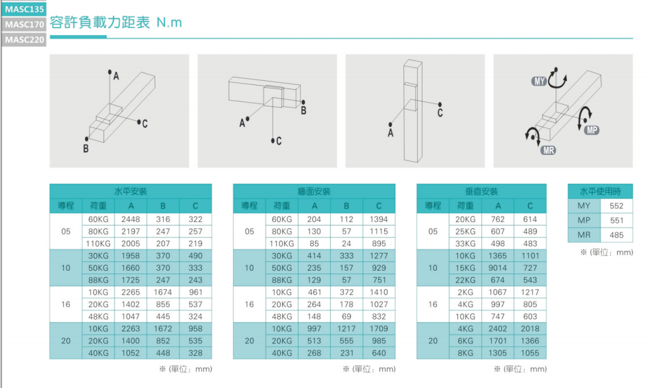 3、加减速度会使搬运质量产生惯性负荷,加减速度越大可搬运质量会越小;而且过大的加减速度会产生较大的重势力,设计时需纳入考量规范。