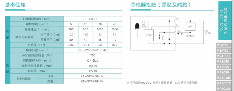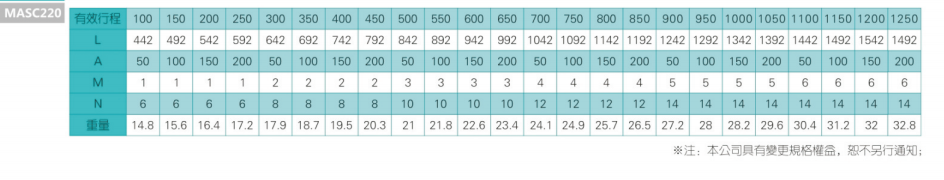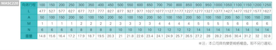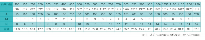 2、螺杆转速超过临界转速时可能发生共振,临界转速和螺杆长度有关,故滚珠螺杆的临界转速也间接决定了滑台模组的有效行程和总长度,有效行程和常用螺杆规格转速的关系如下列表格。