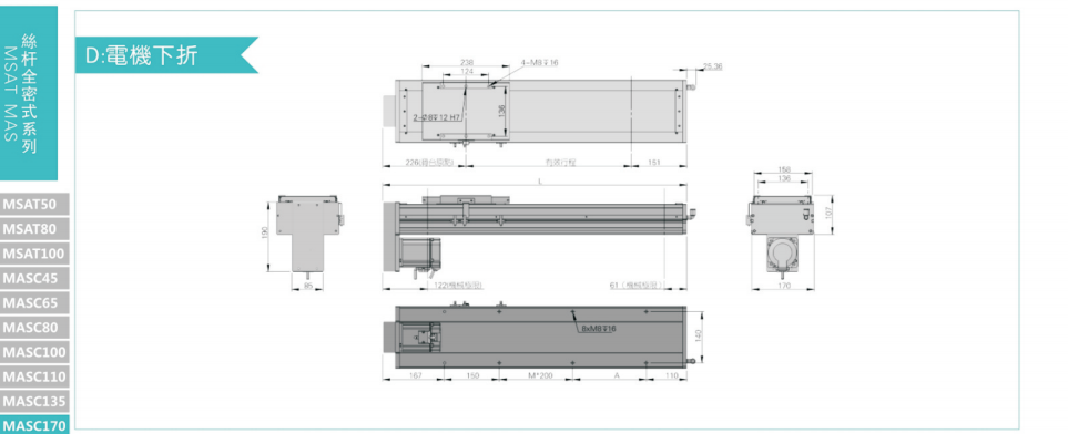 B驱动方式可依照使用需要选择滚珠螺杆驱动或时规皮带驱动。