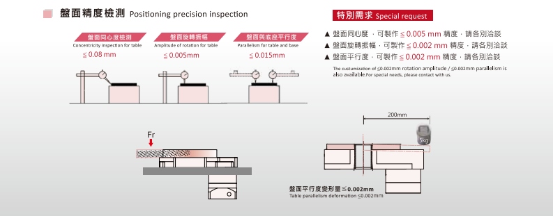 本旋转盘考量到使用时侧向力之问题。因此,采用“园锥滚珠轴承”(Taper Roller 以承受盘面侧向力臂负载。